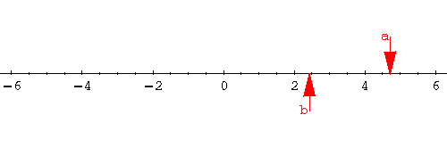 The real number line "respects" the order of the real numbers. A bigger number will always be found to the right of a smaller number. In the picture below, a>b.