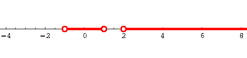 The following is a description of the set of all real numbers with the exception of -1 and 2: