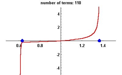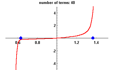 Draw the graph of the power series on its interval of convergence. The behavior at the left is different from the behavior at the right. Try to explain the different behaviors!